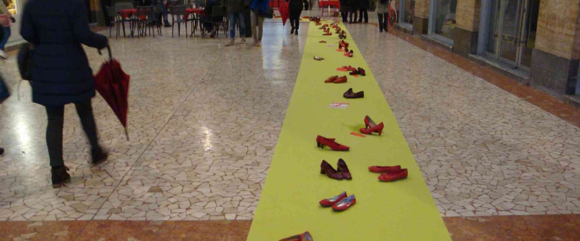 Un paio di scarpe rosse per ogni donna morta a Cremona nel 2012 e nel 2013. È per questo motivo che in Galleria XXV Aprile, questa mattina è stato steso un tappeto sul quale sono state disposte decine e decine di calzature femminili vermiglie, per commemorare e non dimenticare. L'iniziativa è stata organizzata dall'associazione cremonese Aida (Associazione incontro donne antiviolenza), che si occupa di offrire sostegno alle donne che subiscono maltrattamenti e violenze.