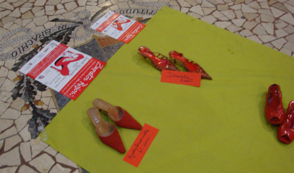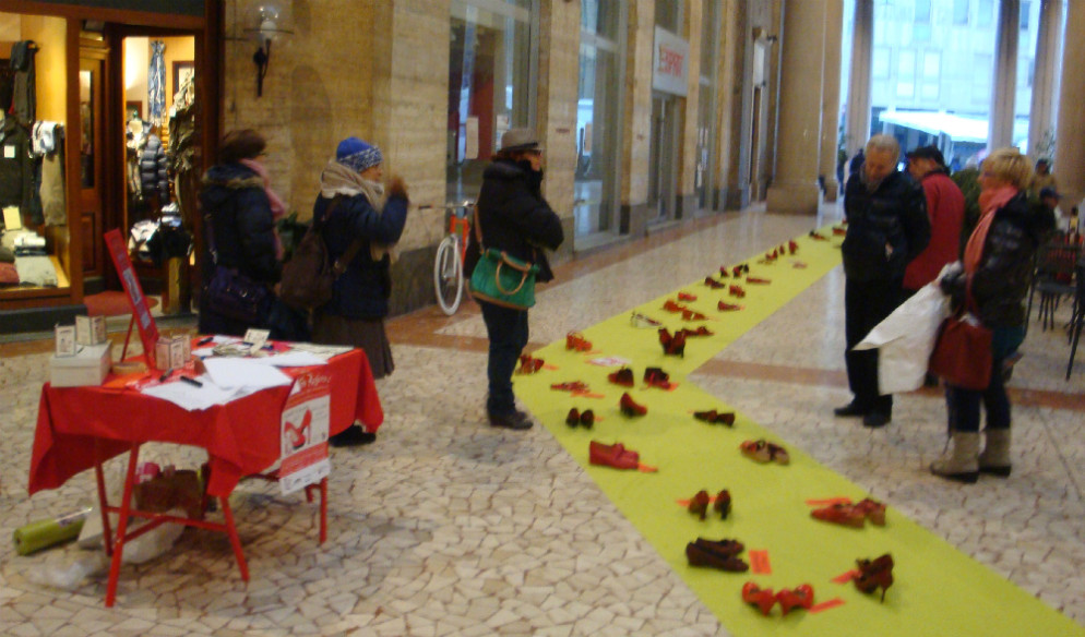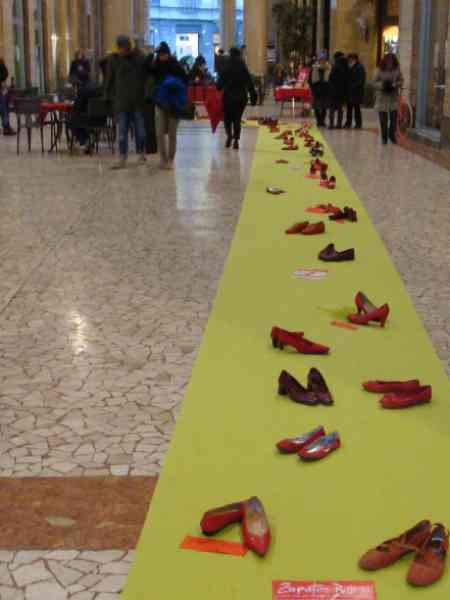 Distesa di Zapatos Rojos in Galleria XXV Aprile Iniziativa di Aida per non dimenticare le donne uccise nel 2012 e nel 2013