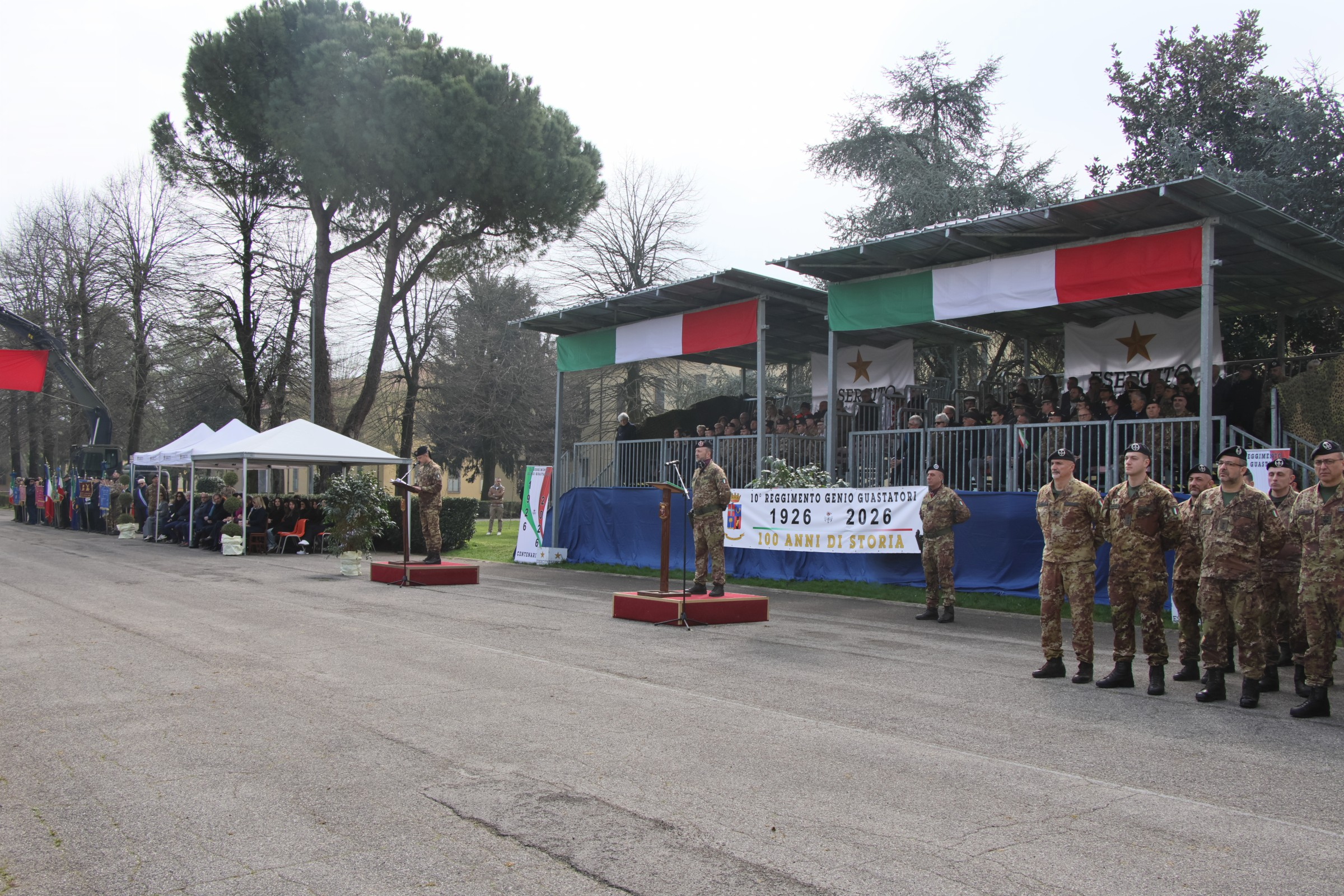 L’indomani, alla presenza, tra l’altro, di numerosi precedenti Comandanti del Reggimento, delle associazioni combattentistiche e d’arma e del personale in quiescenza ha avuto luogo la solenne cerimonia militare, conclusa con il suggestivo sfilamento dei principali mezzi ed equipaggiamenti in dotazione al reparto. La giornata è stata altresì caratterizzata dall’emissione di una cartolina commemorativa a dall'inaugurazione di una mostra storica con documenti originali dei primi anni del 10° Reggimento Genio.