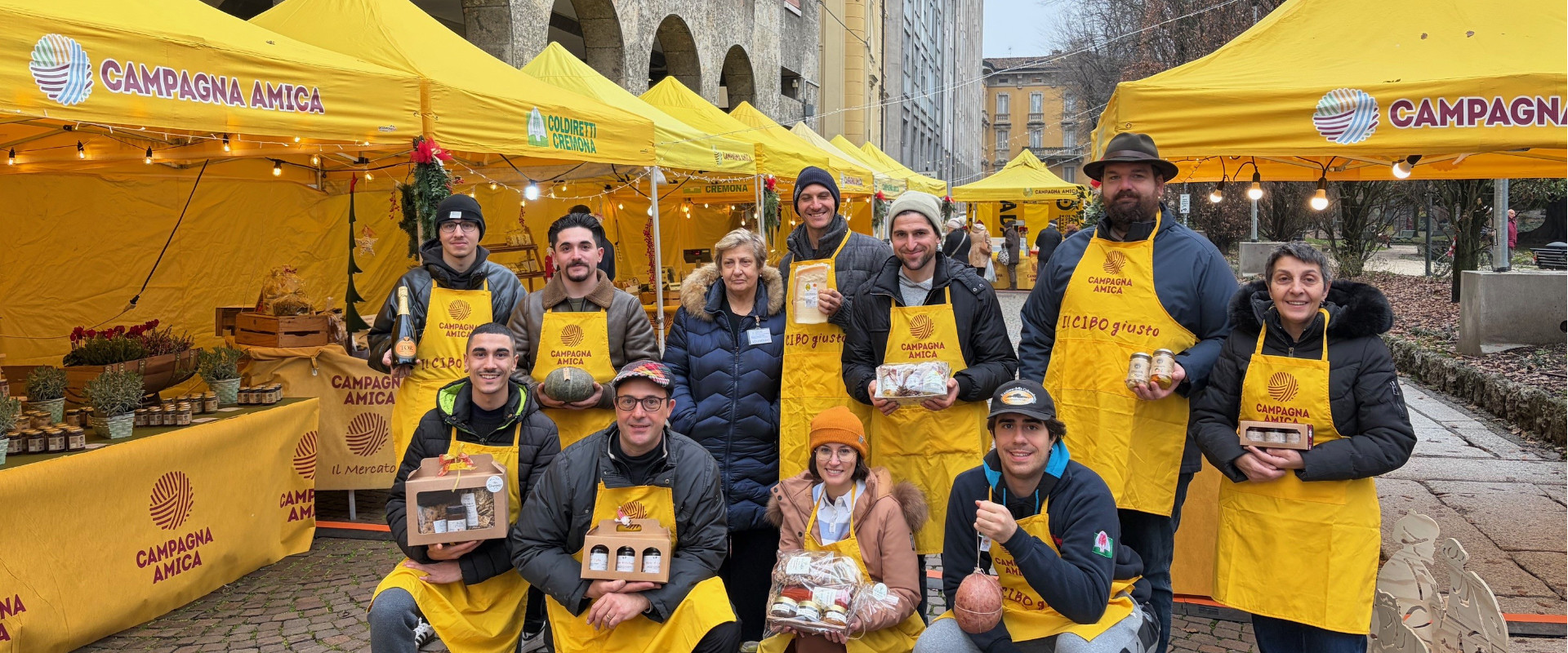 Sotto i gazebo gialli illuminati a festa, gli agricoltori cremonesi (con alcune presenze da altre province) propongono una serie di agri-strenne pensate per le festività, dando ai cremonesi l’occasione di fare un dono nel segno dei sapori del territorio. Sono numerose le aziende agricole protagoniste dell’iniziativa, che si stanno passando il testimone sotto i gazebo gialli issati accanto ai Giardini: così, ogni giorno, i cremonesi possono trovare qualche nuova presenza e proposta.