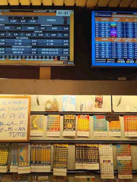 Il lotto tradizionale prevede estrazioni 4 volte alla settimana: un euro la puntata minima. Viene premiato l’ambo, la terna, la quaterna e la cinquina. Metodi moderni, ma il gioco è sempre quello. Più recente il Superenalotto nel quale occorre indovinare 6 numeri e il montepremi cresce di settimana in settimana in caso di mancata vincita. Poi c’è il 10 e Lotto, tutto sugli schermi con estrazioni tutti i giorni, ogni 5 minuti. A parte la galassia dei Gratta e vinci con puntate da 50 centesimi a 25 euro, nella tabaccheria di corso Vittorio Emanuele c’è il grande ventaglio delle scommesse sportive. Di qualsiasi partita, si può puntare su tutto: risultato, gol, ammonizioni. Non è ancora prevista la scommessa sui pali, se no l’ultimo derby di Milano avrebbe portato a vincite interessanti.