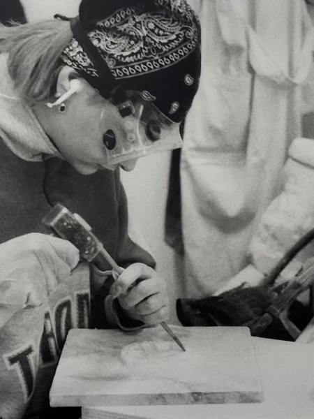 La giovane scultrice cremonese, Alice Mattarozzi al lavoro