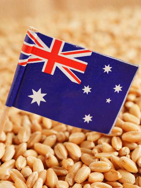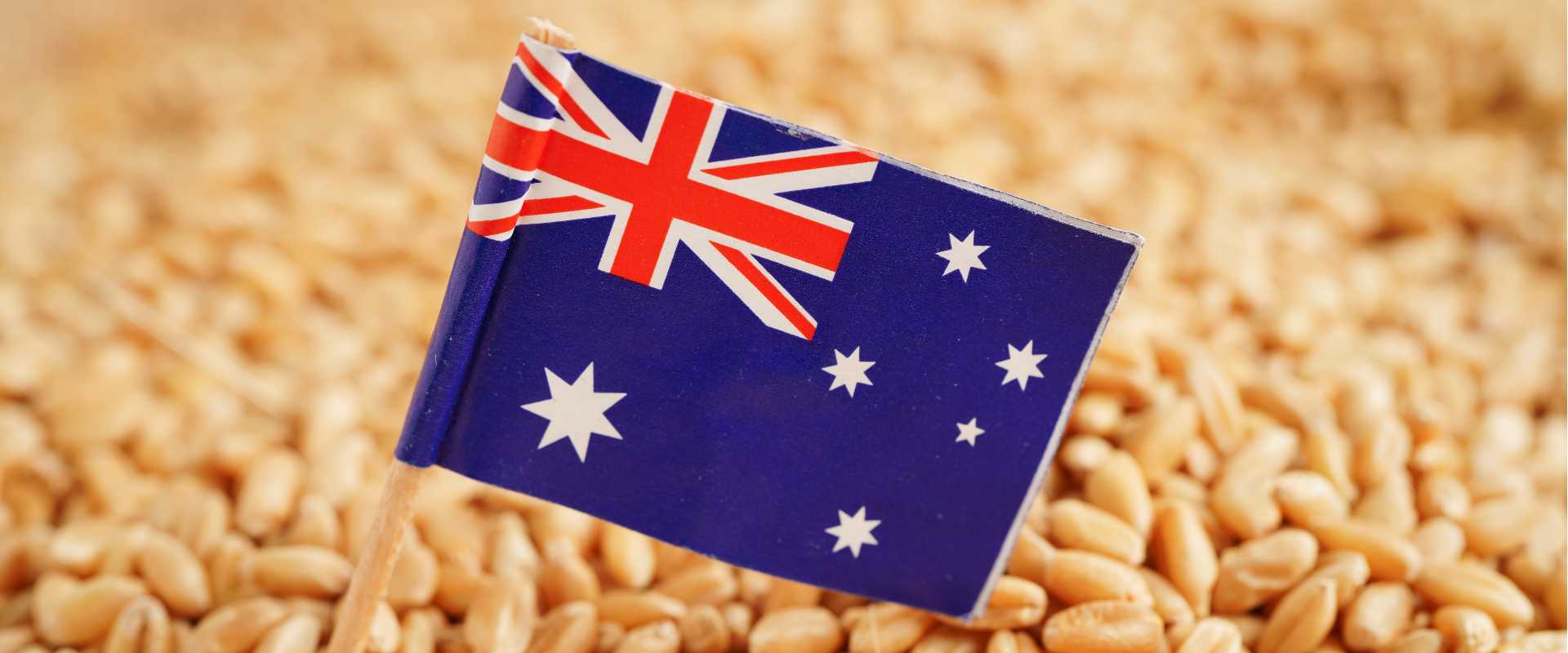 Australia flag on grain wheat, trade export and economy concept.