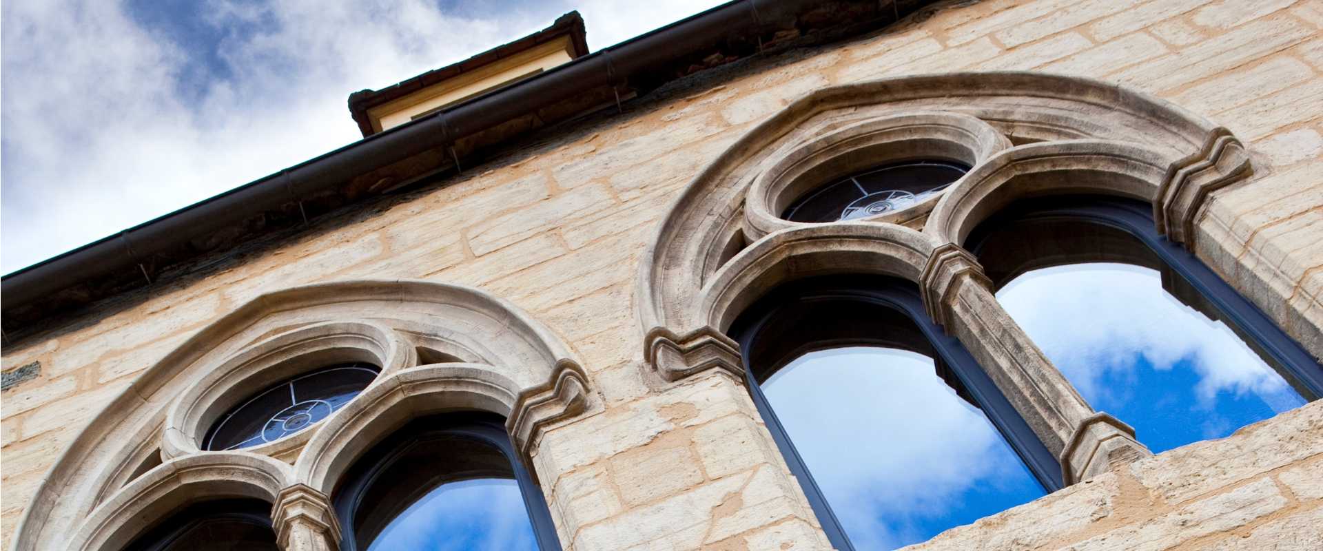 Modern and stylish facade of an house in an old French church