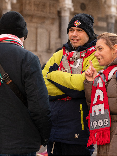 Il ritrovo in piazza del Comune prima di Cremonese-Lecce, per la camminata inclusiva verso lo stadio organizzata insieme all’Associazione Marcotti Osvaldo e al progetto InclusiON [foto USCremonese]
